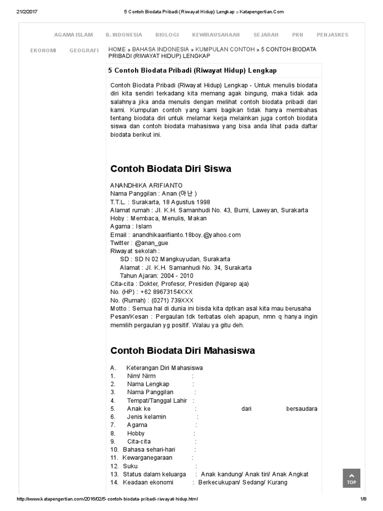 Biodata Amanda Manopo Profil Foto Pribadi Lengkap Terbaru ... from 1.bp.blogspot.com Biodata ariel noah profil beserta foto pribadi lengkap. Myb memungkinkan perusahaan mengetahui profil pelamar dengan lengkap dan mudah. Biodata diri adalah dokumen pribadi yang memberikan keterangan mengenai data pribadi yang akurat. Biasanya biodata ini untuk kebutuhan melamar kerja atau bisa juga untuk ajang ta'aruf. A short summary of this paper. Untuk lebih lengkapnya dosenpintar.com pada kesempatan ini akan membagikan sebuah artikel mengenai tentang contoh biodata diri yang meliputi cara membuat biodata diri, struktur pembuatan biodata. Contoh biodata dengan format yang benar. Pengertian biodata bisa diartikan sebagai sebuah data biografis yang didalamnya berisi pernyataan faktual mengenai kehidupan seseorang.